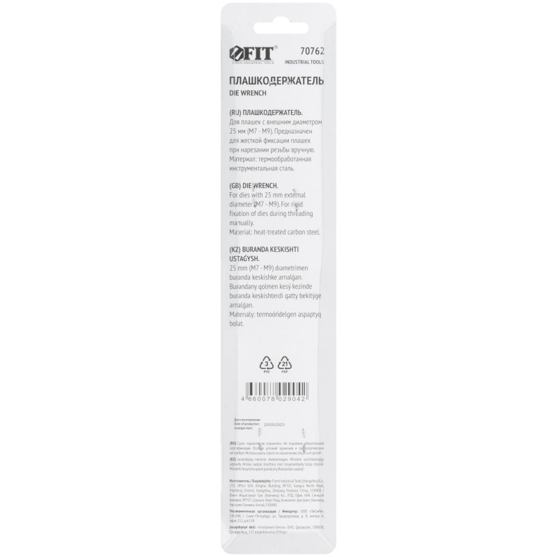 Плашкодержатель 3 (25х9 мм) FIT IT арт. 70762 предназначен для фиксации плашек при нарезании наружной резьбы. Инструмент изготовлен из качественной инструментальной стали, что обеспечивает ему прочность и долговечность. Длина рукояток способствует оптимальному приложению усилий.