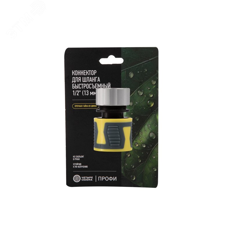 - Преимущества:Зажимная гайка из цинка не лопается и не трескается при высоком давлении|Покрытие из термопластичной резины - коннектор не скользит, даже если вы фиксируете его мокрыми руками|Надолго сохраняет рабочие свойства и внешний вид - устойчив к ультрафиолету и отрицательным температурам|Монтаж без инструментов и крепежа - коннектор легко устанавливается и так же легко отсоединяется