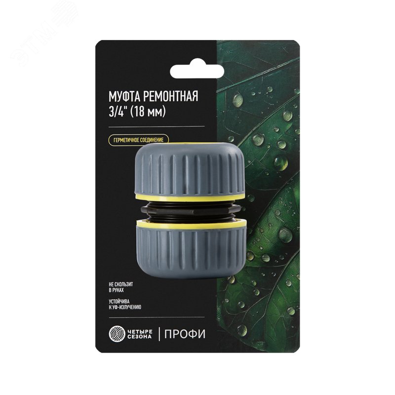 - Преимущества:Надолго сохраняет рабочие свойства и внешний вид - устойчива к ультрафиолету и отрицательным температурам|Покрытие из термопластичной резины - муфта не скользит, даже если вы фиксируете ее мокрыми руками|Монтаж без инструментов и крепежа - муфта легко устанавливается и так же легко отсоединяется|Полив без потерь - муфта не пропускает воду и гарантирует герметичное и надежное соединение