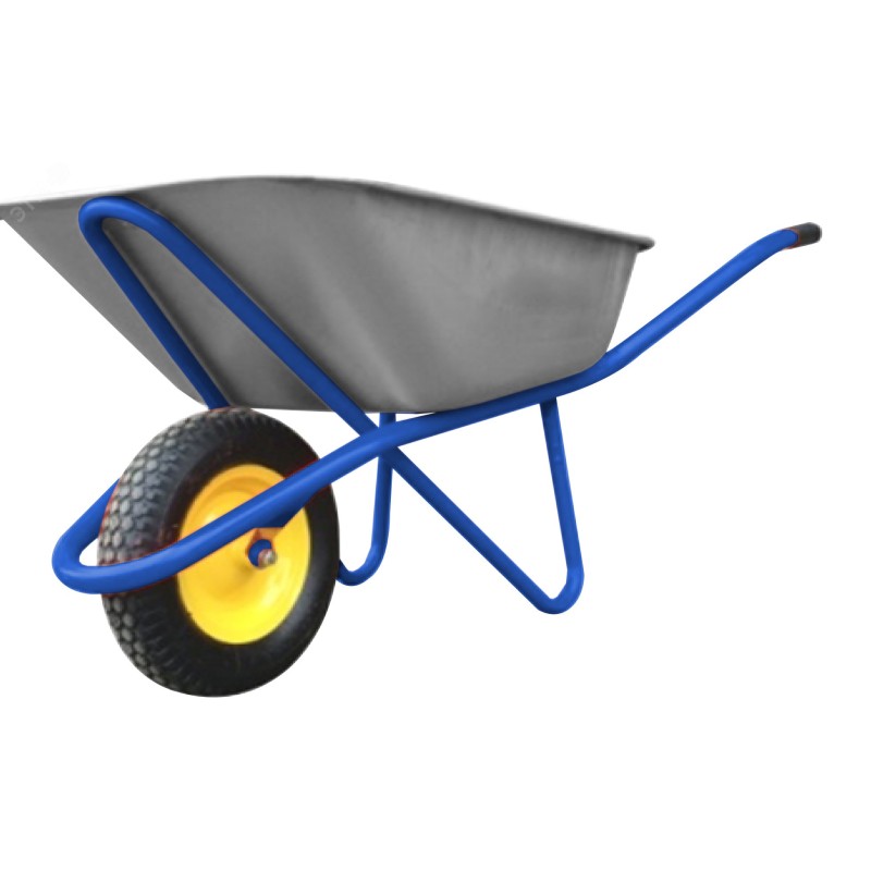 - Преимущества:Тачка фиксируется в горизонтальном положении за счет изгибов рамы, что предотвращает высыпание материала во время загрузки|Цинковое покрытие кузова и окраска рамы предотвращают коррозию|Прочное стальное корыто обладает длительным сроком службы|Конструкция с одним колесом обеспечивает маневренность тачки