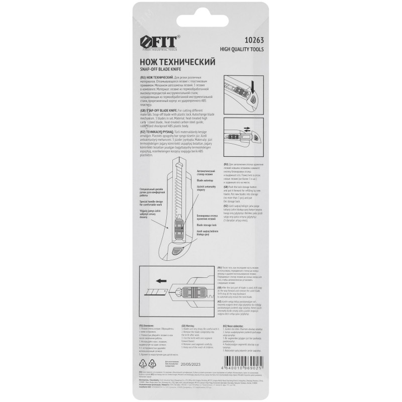 - Преимущества:лезвие изготовлено из высокоуглеродистой стали с твердостью 56-62 HRC и обладает высокой прочностью и износостойкостью|3 лезвия в комплекте дают возможность выполнения большого объема работ|механизм автозамены лезвий дает возможность быстро сменить испортившееся лезвие не разбирая нож|автоматическая фиксация повышает удобство использования|направляющая с мелким шагом перфорации повышает точность установки лезвия|ударопрочный ABS пластиковый корпус выдерживает высокие механические нагрузки|текстурная поверхность резиновой вставки обеспечивает дополнительный упор и предотвращает проскальзывание во время работы