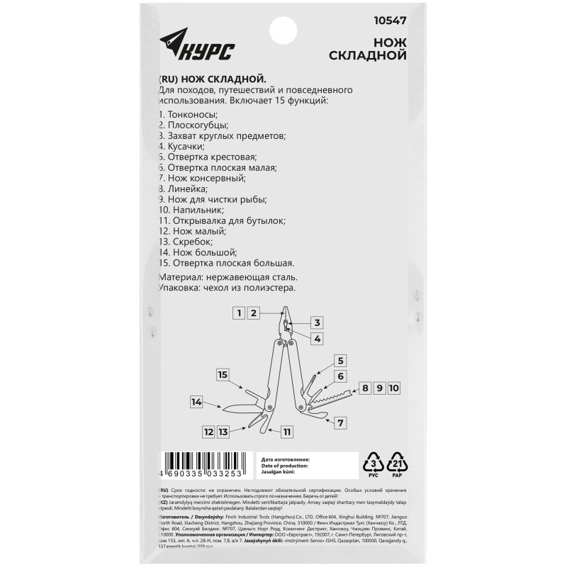- Конструкция ножа:мультитул
