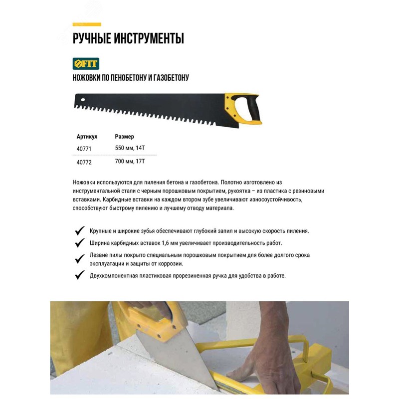 - Преимущества:Крупные и широкие зубья обеспечивают глубокий запил и высокую скорость работы|Твердосплавные вставки на зубьях обладают высокой износостойкостью|Увеличенная толщина полотна способствует высокой прочности|Специальное порошковое покрытие полотна снижает трение и налипание материала во время работы|Эргономичная пластиковая рукоятка обеспечивает надежный хват|Резиновая вставка на ручке предотвращает проскальзывание во время работы