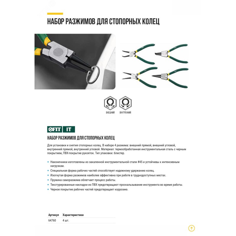 Разжимы стопорных колец 170 мм, набор 4 шт.