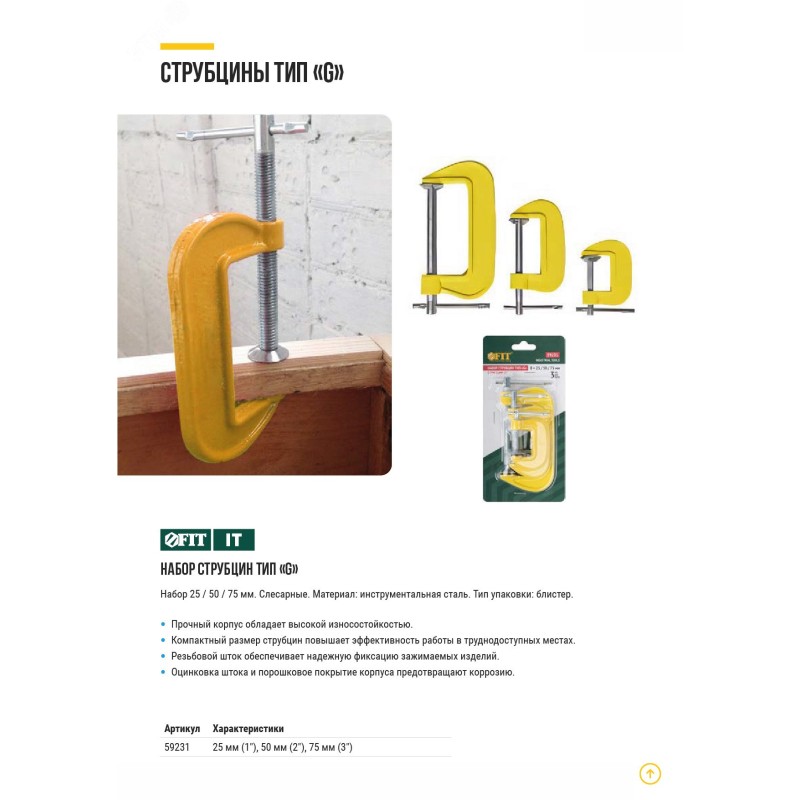 Для слесарных работ. Компактный размер струбцин повышает эффективность работы в труднодоступных местах. Прочный корпус обладает высокой износостойкостью. Резьбовой шток обеспечивает надежную фиксацию зажимаемого изделия. Оцинковка штока и порошковое покрытие корпуса предотвращают коррозию.