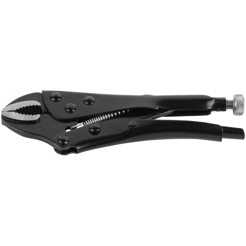 - Преимущества:Может использоваться в качестве трубного ключа|Степень сжатия регулируется винтом|Рабочие губки имеют противоскользящую ребристую поверхность|Черненое покрытие предотвращает коррозию
