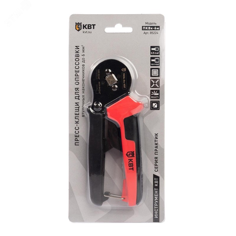 Диапазон сечений втулочных наконечников - НШВИ, НШВ - 0.25–6.0 мм2. НШВИ(2) - 2х0.5–2х4.0 мм2. Универсальный инструмент для опрессовки втулочных наконечников. Одна саморегулирующаяся матрица на все типоразмеры диапазона. Ширина обжимной матрицы - 13 мм. Инструмент перекрывает диапазон из 16 размеров втулочных наконечников. Квадратный профиль обжима с рифлением. Двухкомпонентные эргономичные рукоятки. Фиксатор рукояток. Вес - 250 г. Длина - 150 мм