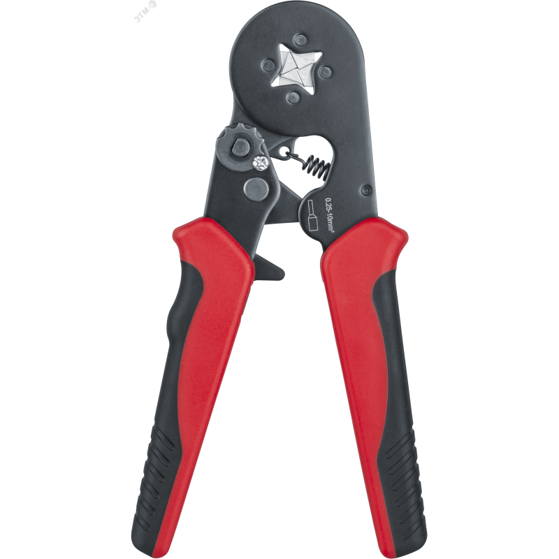- Преимущества:Саморегулирующаяся матрица выполнена из легированной стали|Храповой механизм блокирует обратный ход обжимной матрицы до завершения цикла опрессовки и исключает риск недоопрессовки наконечника|Специальный винт служит для регулировки усилия опрессовки|Эргономичные рукоятки с резиновыми вставками обеспечивают комфорт при работе