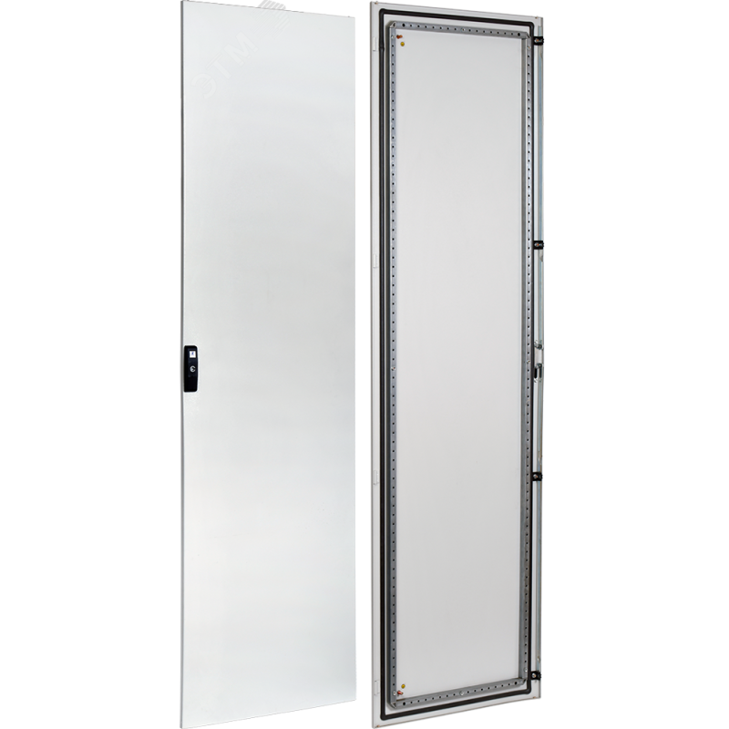 Полностью симметричный профиль - позволяет устанавливать двери в любой боковой плоскости|Высокая несущая способность - нагрузка на дверь 50 кг.|По периметру установлена стабилизационная рамка жесткости с шагом перфорации 25 мм - позволяет рационально скомпоновать оборудования на двери и проложить отводящий кабель|Дверь оснащена шпилькой M8, позволяющей подключать заземление к каркасу в наиболее оптимальных местах|Стандартные двери оборудованы четырехточечным механизмом запирания|Петли дверей с двойным штоком - простая и быстрая навеска двери одним человеком|В двери установлен замок (без ручки, с вкладышем под ключ с двумя зубцами)