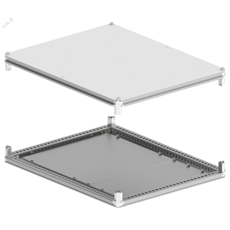 - Преимущества:Высокая степень защиты - панель-крыша оснащена литым уплотнителем|При снятии нижней панели-основания с заглушками возможно получить кабельный ввод размером по периметру шкафа|Унифицированный крепеж