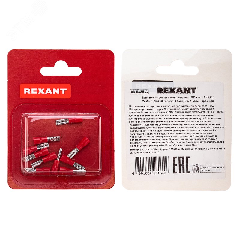 Клемма плоская изолированная REXANT предназначена для создания качественного подключения электрооборудования или соединения проводов между собой, которое при необходимости возможно разъединить без лишних усилий. Такая клемма используется для оконцовывания многожильных медных проводов при монтаже мобильных электрических контактных соединений на подвижном составе (автомобиле-, вагоно-, самолето- и судостроении). Изолированная плоская клемма состоит из металлического коннектора (гнездо) из латуни, с поверхностным электролитическим лужением и защитного изолятора из поливинилхлорида (ПВХ), который надежно защищает место обжима кабеля. Обжатие производится специальными пресс-клещами (ht-301 H арт.12-3014, 12-3014, ht-301 N арт.12-3116, ht-301 W арт.12-3021, 12-3021-4) поверх защитного изолятора. Каждая клемма имеет фиксатор для более прочного механического соединения с штекерным разъемом.