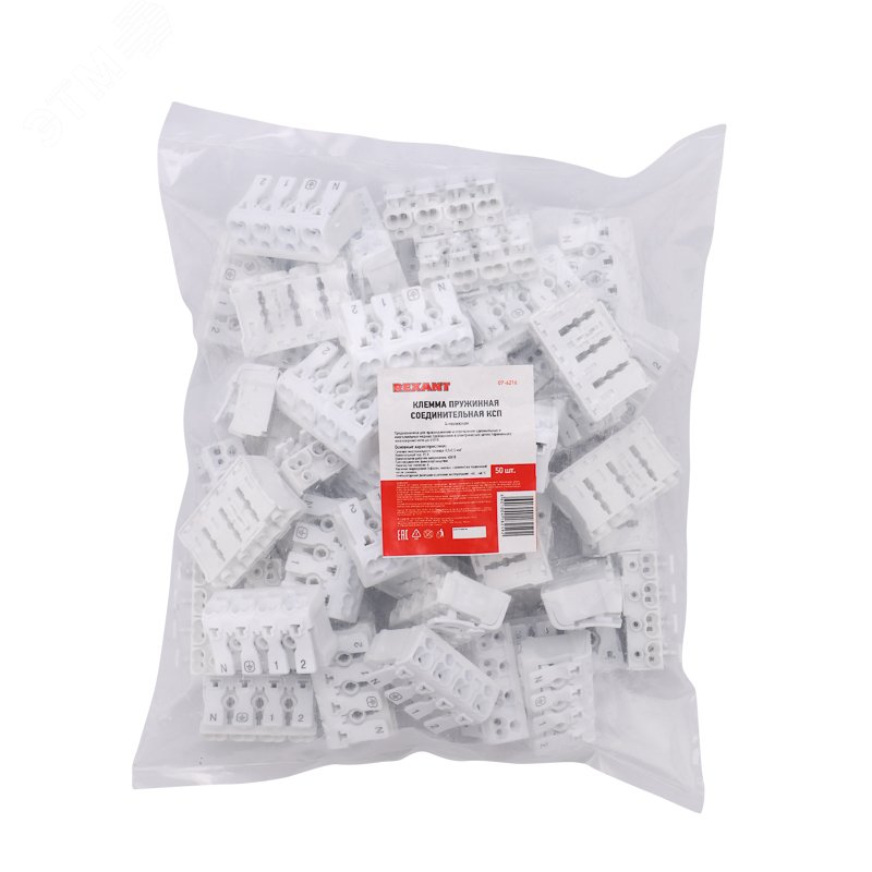 Пружинные четырехполюсные клеммы REXANT предназначены для присоединения и ответвления одножильных и многожильных медных проводников в электрических цепях переменного тока напряжением до 450 В. Наличие маркировки (‘фаза‘, ‘ноль‘, ‘земля‘) на подвижной части зажима. Материал корпуса - самозатухающий ПВХ, материал контакта - электротехническая сталь.