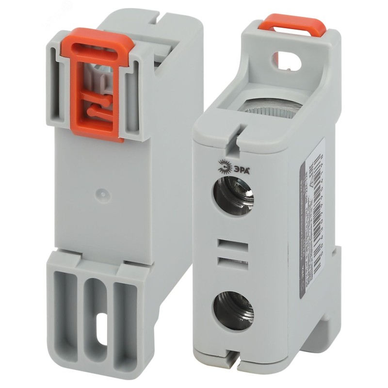 Клеммы силовые вводные КСВ ЭРА представляют собой клеммный винтовой зажим из алюминия в компактном корпусе из диэлектрического негорючего пластика. Предназначены для организации ввода и распределения проводников больших сечений (от 6 до 240 мм2) внутри электротехнических шкафов и щитов, а также в качестве переходного элемента при соединении проводников, дополнительных элементов для подключения и установки промышленного оборудования в цепях переменного или постоянного тока напряжением до 800 В. Токоведущая часть выполнена из алюминия, обладает ребристой поверхностью на внутренней части, что обеспечивает надёжную фиксацию при затягивании контакта, - прижимные винты с шестигранной головкой изготовлены из оцинкованной стали и обладают скруглённой контактной частью, что исключает перекусывание и повреждение подключаемых проводников.