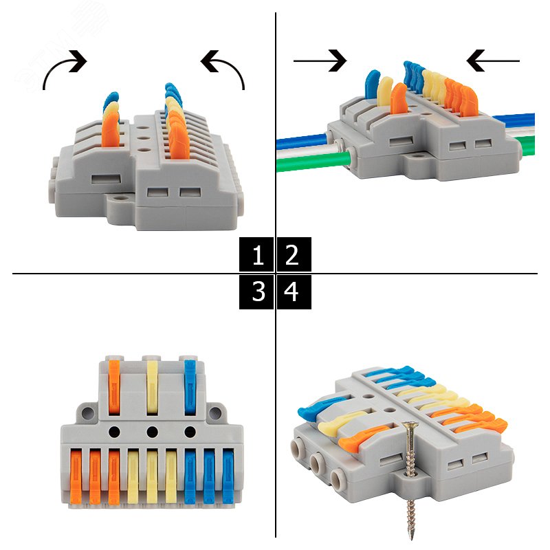 - Преимущества:Низкий перегрев при пропускании номинальных токов|Каждый проводник имеет отдельное клеммное место|Корпус выполнен из материалов, не поддерживающих горение|Улучшенная токовая проводимость зажимов за счет увеличения объема используемого металла