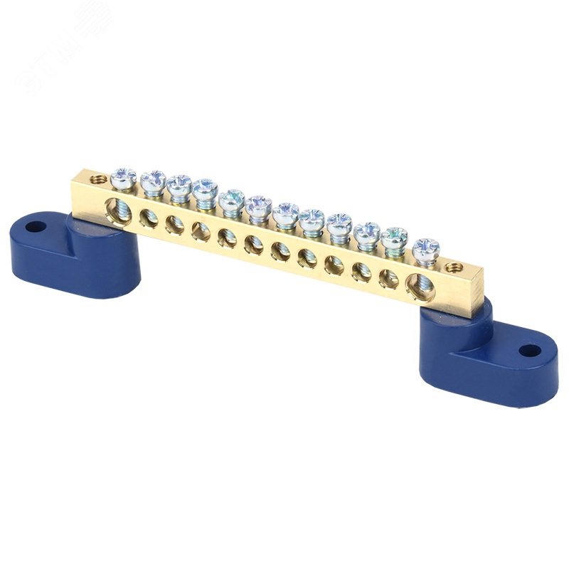Шина ''N'' нулевая 6х9 мм на двух угловых синих изоляторах 12 групп, REXANT