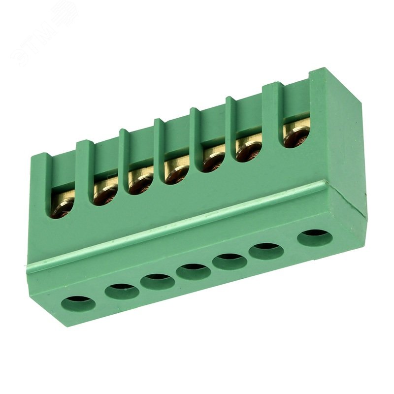 Шина PE ''земля'' в корпусном зеленом изоляторе на DIN-рейку 6x9 мм 7 групп, REXANT