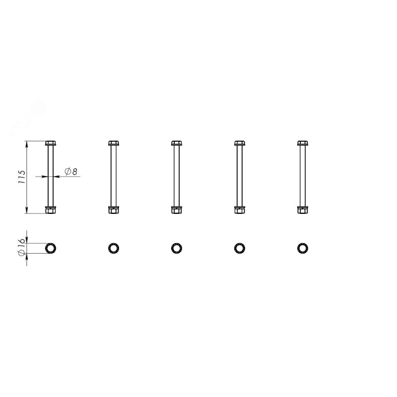 Комплект метизов предназначен для надёжной фиксации верхней и нижней частей шинодержателей для высоты токоведущей шины 30 мм. В комплект входят болты из оцинкованной стали длиной 110 мм, гайки, плоские шайбы и шайбы гровер. Класс прочности болтов 8х8, резьба М8.