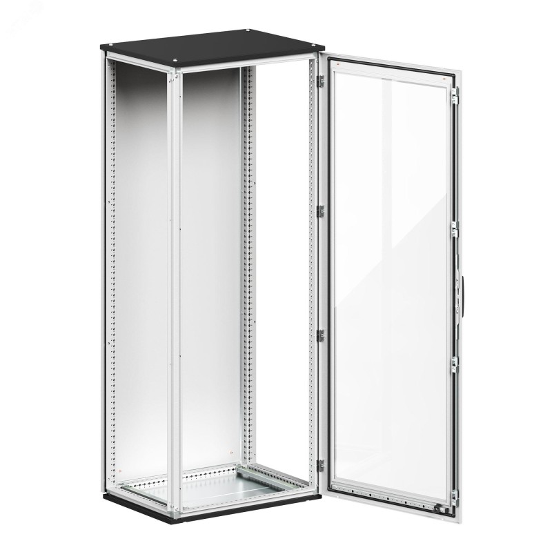 Комплекты напольных корпусов CQE N предназначены для построения систем автоматизации, управления, распределения энергии. Корпус поставляется в разборном виде и состоит из каркаса (крыша, основание, стойки), задней панели и стеклянной двери. Боковые панели не входят в комплект и приобретаются отдельно. Комплекты оптимизируют процесс закупки, позволяя заказывать полный набор компонентов под единым артикулом. Угол открытия двери – 130 градусов. Степень защиты при использовании стандартных боковых панелей – IP55, со сплошным дном – IP65. Дверь оснащена накладкой под ключ с двойной бородкой. Каркас изготовлен из листовой стали 1,5 мм с порошковым покрытием. Ребра жесткости обеспечивают несущую способность до 1000 кг. Размер (ВхШхГ), мм – 2000х600х600.