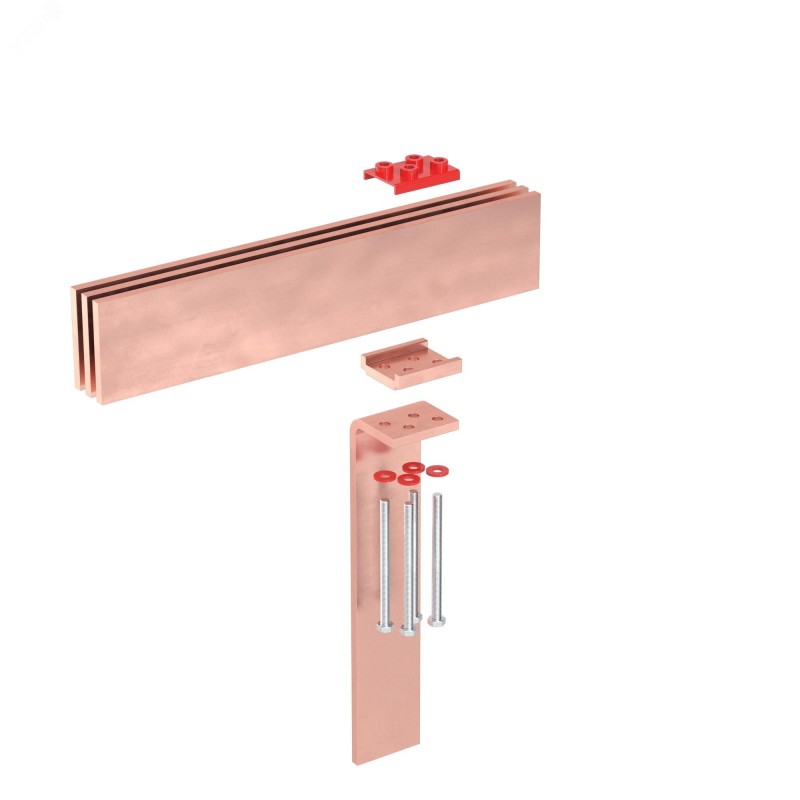 Комплект обратного подключения аппаратов 3 шины/фаза. Комплект подключения совместно с болтами обеспечивает надежную фиксацию токопроводящих элементов (струбцин и накладок) в соединении шин. Применяется для подключения аппаратов к токоведущим шинам.