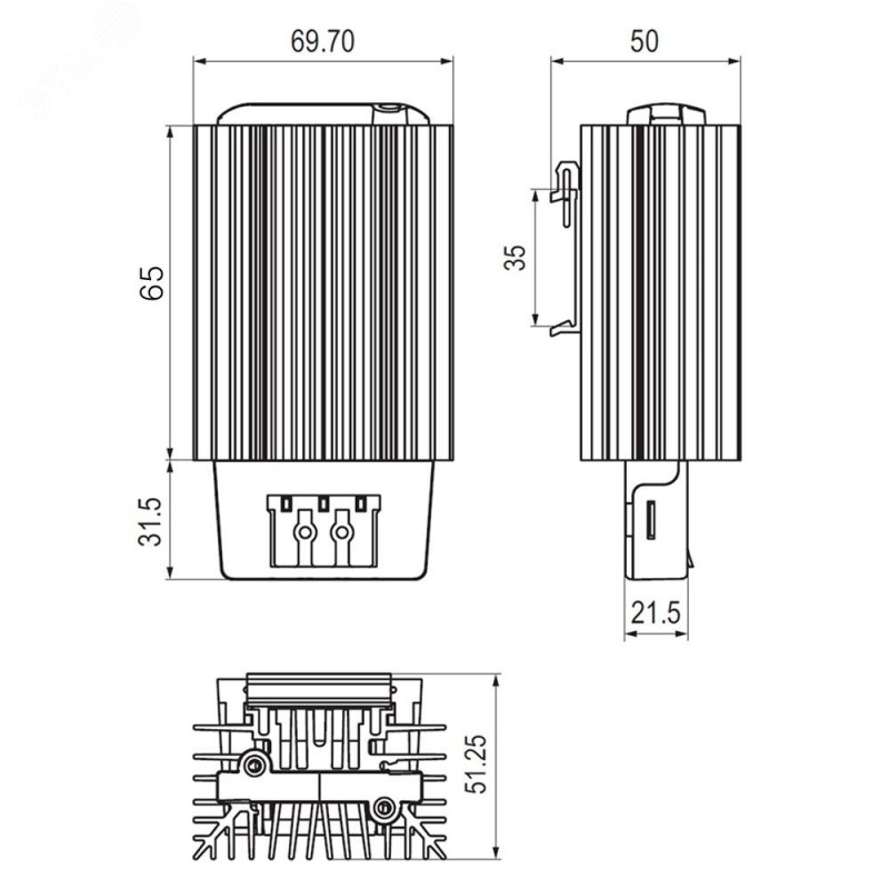 Обогреватель в черном алюминиевом корпусе мощностью 25 Вт предназначен для поддержания необходимой температуры внутри электротехнического шкафа. Работает от напряжения 24 В постоянного напряжения. Обогреватель изготовлен из высококачественных материалов, обеспечивающих надежную работу. Степень защиты – IP20. Благодаря компактным размерам 50x70x97 мм этот обогреватель легко устанавливается в ограниченном пространстве. Рабочий диапазон температур от -45 до +70 градусов Цельсия делает его подходящим для использования в суровых условиях эксплуатации. Обогреватель оснащен нагревательным элементом РТС-типа, что обеспечивает стабильную и долговечную работу.