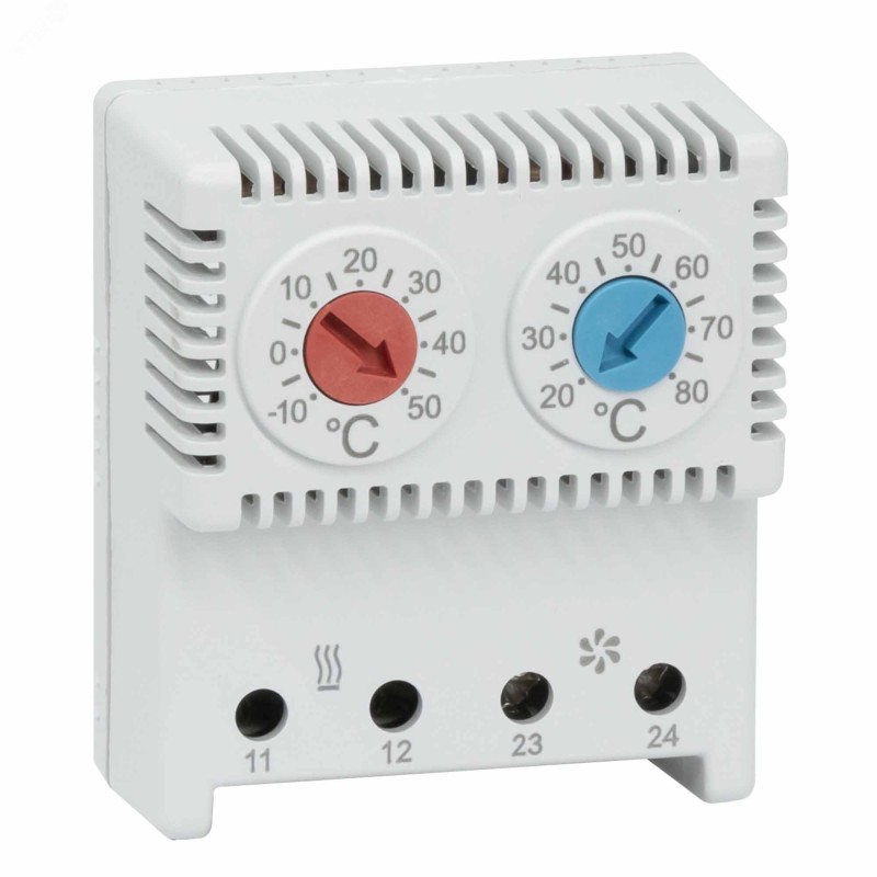 Аксессуары для контроля микроклимата, серия RAM klima - Сдвоенный термостат с регулируемыми диапазонами температуры -10…+50°C, NС-контакт, +20…+80°C, NO-контакт. Размеры (Ш х В х Г), мм 53 x 35 x 61