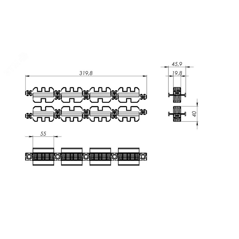 Комплект изоляторов предназначен для организации главной шинной системы. Подходит для установки 1 или 2 токоведущих шин прямоугольного сечения толщиной 10 мм для 4-полюсной шинной системы.