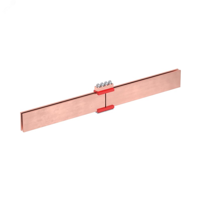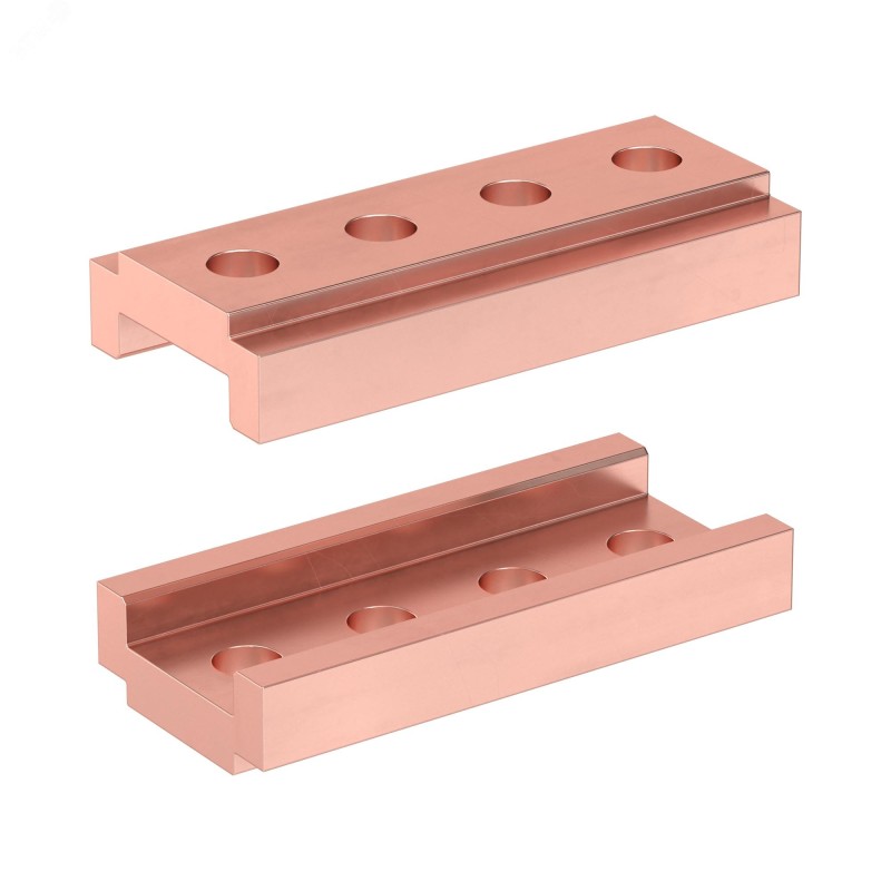 Струбцина медная 100 мм, 2 шины на фазу. Обеспечивает прохождение электрического тока в местах соединения шин. Применяется для соединения сборных шин 2-2 и подключения автоматических выключателей шиной шириной 100 мм.
