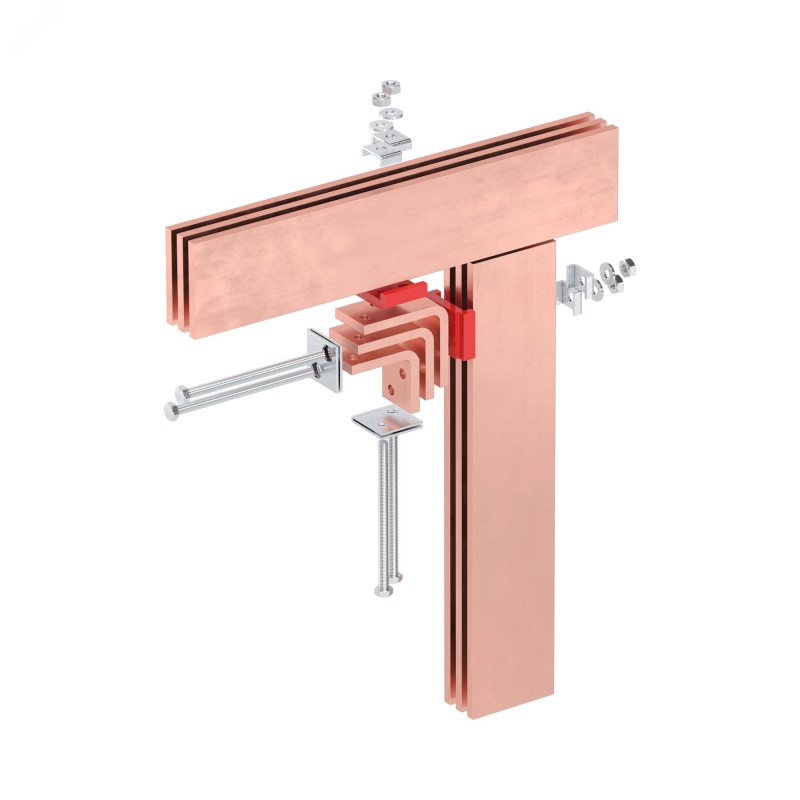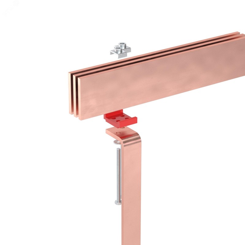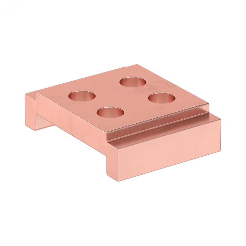 Струбцина медная 50 мм, 3 шины на фазу. Обеспечивает прохождение электрического тока в местах соединения шин. Применяется для подключения автоматических выключателей шиной шириной 40-50 мм а также для соединения горизонтальных и вертикальных шин 3-3 и 3-2.