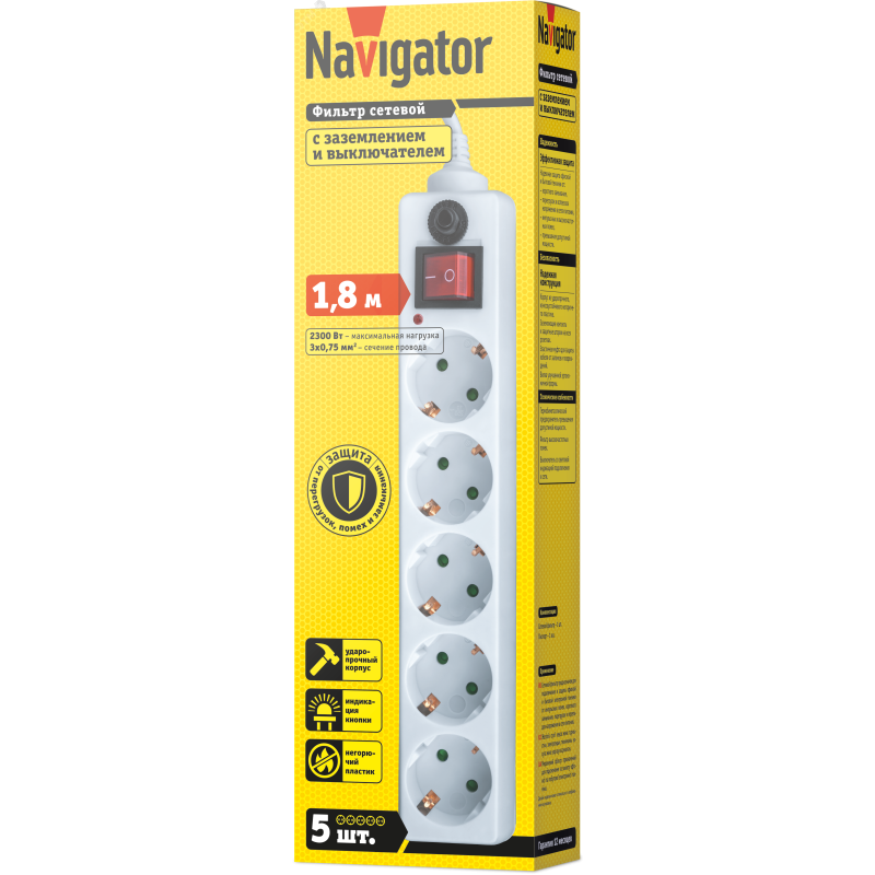 - Преимущества:Неразборный корпус из негорючего износостойкого и ударопрочного АБС-пластика|Заземляющие контакты и защитные шторки на всех розетках|Эластичная муфта предохраняет кабель от заломов и повреждений|Выключатель со световой индикацией напряжения|Термобиметаллический предохранитель превышения допустимой мощности