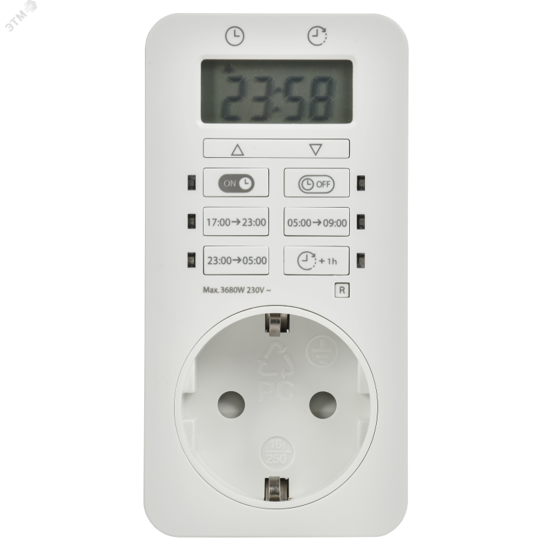 - Преимущества:Недельное и суточное программирование — гибкая настройка расписания работы приборов под ваш ритм жизни|Контроль времени работы (Таймер обратного отсчета) — автоматическое отключение прибора через заданный интервал от 1 секунды до 10 часов|Полная автономия — встроенный аккумулятор сохраняет все программы и настройки до 3 месяцев при отключении электроэнергии|Контроль времени работы (Таймер обратного отсчета) — автоматическое отключение прибора через заданный интервал от 1 секунды до 10 часов