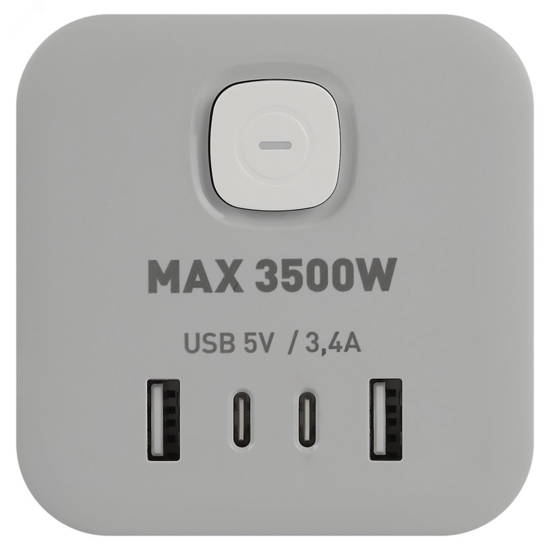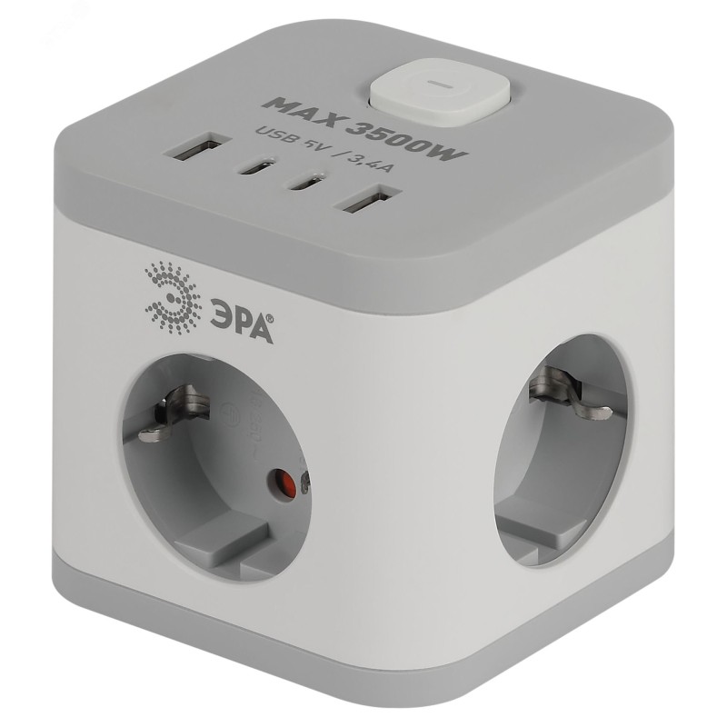 - Преимущества:Прочный корпус в виде башни из негорючего поликарбоната|4 розетки с заземлением + 2typeA+2typeC 3.4A/5V|Выключатель со световой индикацией