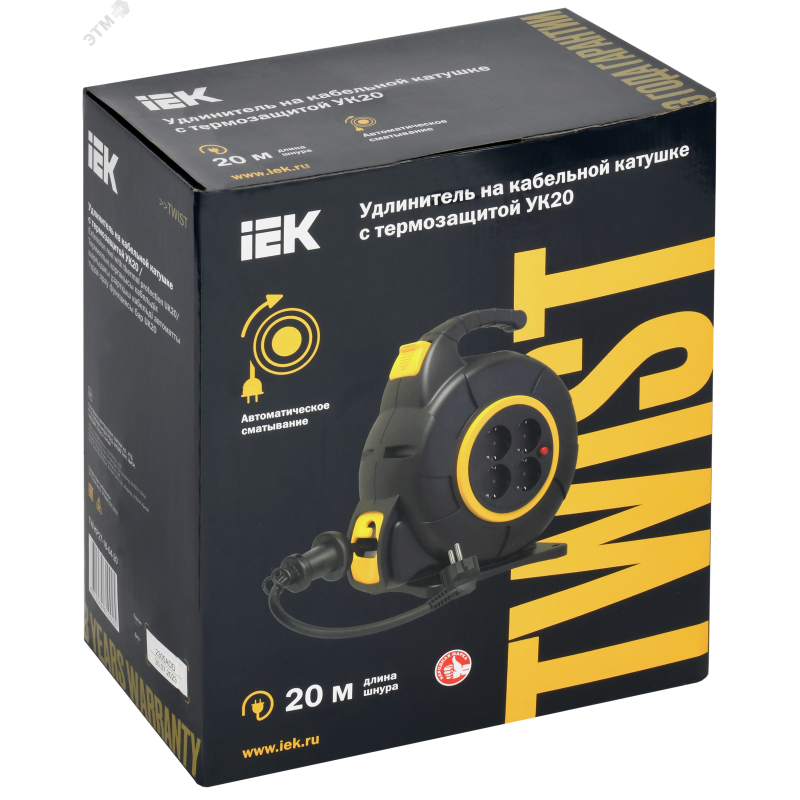 - Преимущества:Механизм автоматической смотки кабеля предотвращает его спутывание и залом|Литой корпус обеспечивает защиту устройства от повреждений и внешних воздействий|Фиксатор на кабеле предотвращает излишнюю смотку кабеля|Термозащита от повреждения кабеля и возгорания удлинителя при перегрузке и коротком замыкании