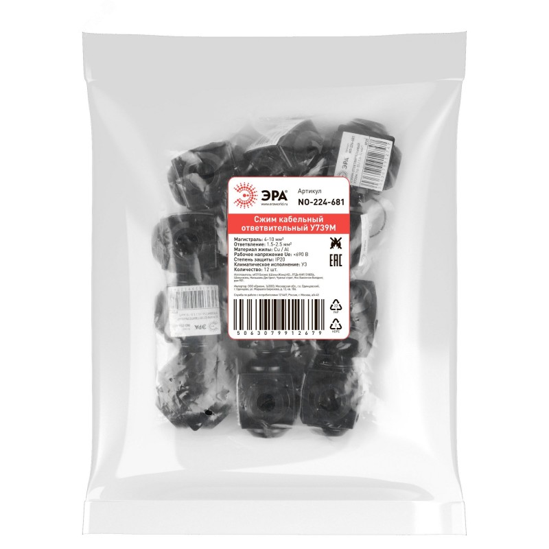 - Дополнительная информация:Каждое изделие обладает индивидуальным штрих-кодом, на котором указаны модель зажима и диапазон сечений кабеля ''магистраль–ответвление''.