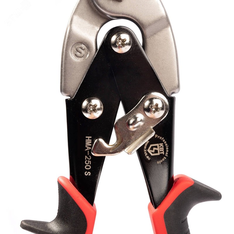 Предназначены для прямого реза листовой низкоуглеродистой, нержавеющей стали, тонкостенных металлических профилей и профнастилов, резка листовой низкоуглеродистой стали до 1,2 мм, резка листовой нержавеющей стали до 0,7 мм. Мощный рычажный механизм обеспечивает эффективный и точный рез. Насечки на лезвиях предотвращают проскальзывание при резке. Двухкомпонентные рукоятки с упором под пальцы. Отверстие для подвешивания на рукоятке, блокиратор рукояток, возвратная пружина. Вес инструмента: 390 г Длина инструмента: 250 мм
