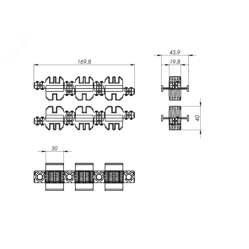 Комплект изоляторов предназначен для организации главной шинной системы. Подходит для установки 1 или 2 токоведущих шин прямоугольного сечения толщиной 5 мм для 3-полюсной шинной системы.