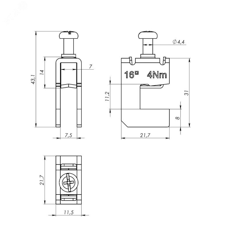 - Максимальное сечение провода, мм2:16