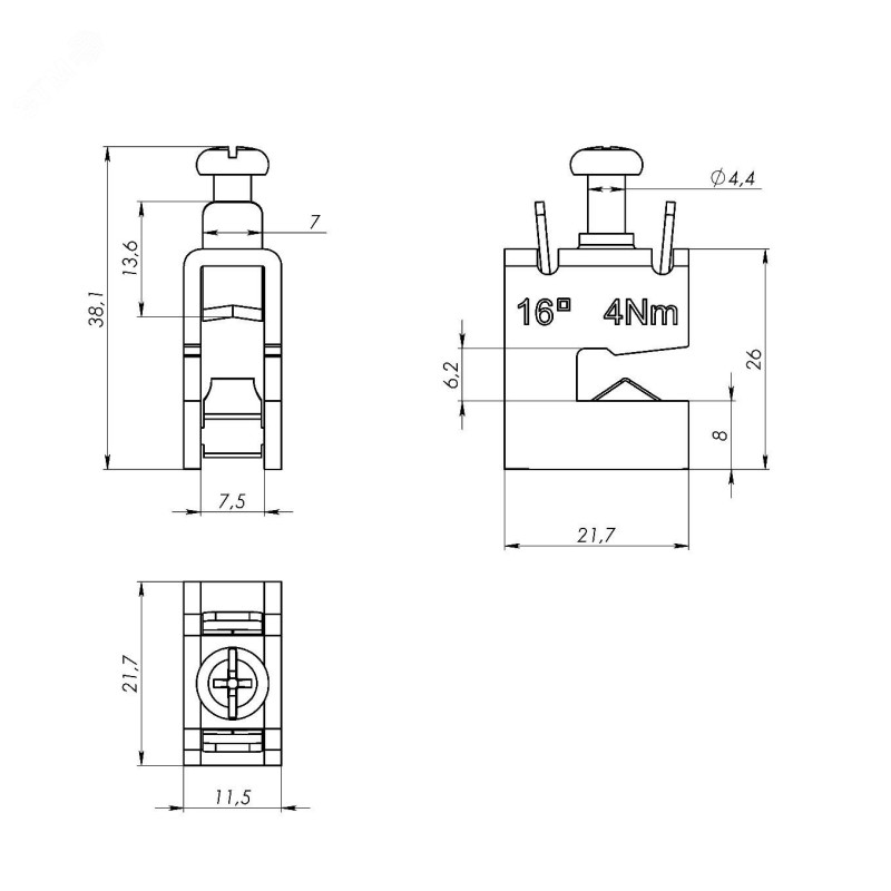 - Максимальное сечение провода, мм2:16