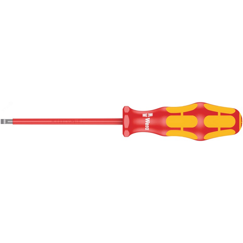 - Дополнительная информация:Винты со шлицем. Рабочий конец - изолированный, поштучный контроль согласно IEC 60900. Исполнение - коническое острие, наконечник - Lasertip. Ручка - Kraftform с защитой от перекатывания, многокомпонентная. Идентификаторы инструментов ''Take it easy'' цветовая кодировка профиля наконечника (желтый цвет - шлиц) и маркировка размера на ручке отвёртки. 1.6x8.0x200