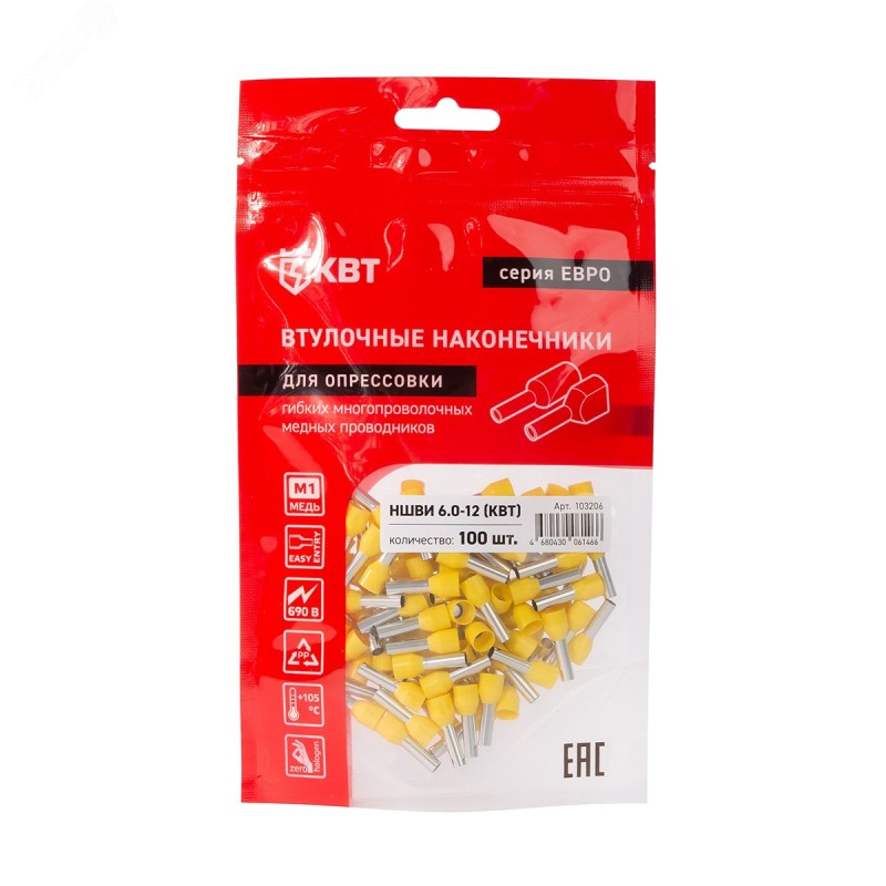 Для монтажа одного провода Предназначены для оконцевания методом опрессовки гибких многопроволочных медных проводников. Трансформируют концы многожильных проводов в монолитные штифты Современная альтернатива обязательному облуживанию концов многожильных проводников при подсоединении к клеммам Максимальное напряжение: 690 В Размеры изолированных манжет и втулок наконечников НШВИ рассчитаны для монтажа одного проводника соответствующего сечения Материал коннектора: медь марки М1 Покрытие коннектора: электролитическое лужение Материал изоляции: полипропилен. Не содержит галогенов Термостойкость изоляции: +105°C