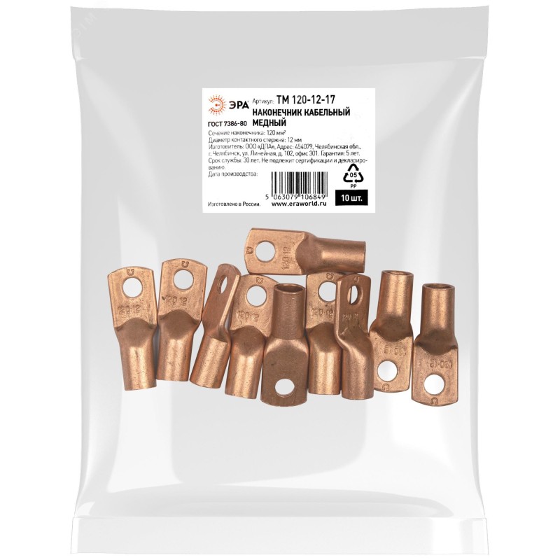 - Преимущества:Наконечники ТМ изготавливаются из медной трубы марки М2 без покрытия (климатическое исполнение УХЛ3)|Силовые наконечники ЭРА серии ТМ произведены в соответствии с ГОСТ 7386-80