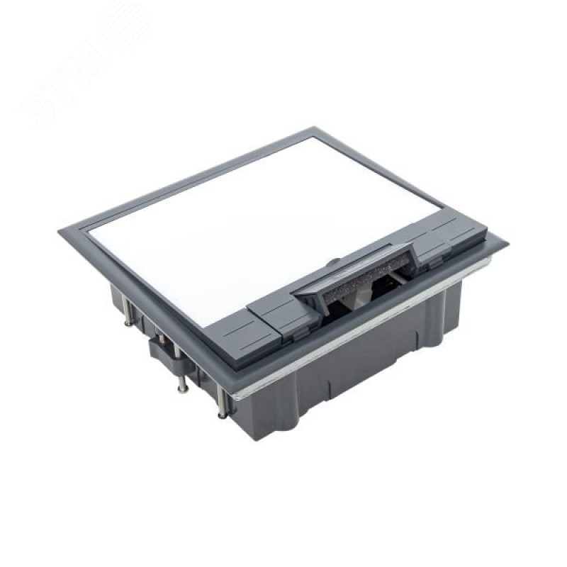 Лючок под розетки – это изделие прямоугольной формы, для компактного размещения электрических и информационных розеток. Лючки могут использоваться самостоятельно при установке в фальш-пол или вместе с коробкой для заливки в бетон, которая устанавливается в момент заливки стяжки. Лючки имеют вводы для установки кабелей внутри пола и выводы непосредственно к потребителю через крышку лючка. Внутри лючка есть посадочные модули (посты) стандарта 45х45 для установки розеток. Все лючки C-Line ударопрочные и выдерживают нагрузку до 153 кг.