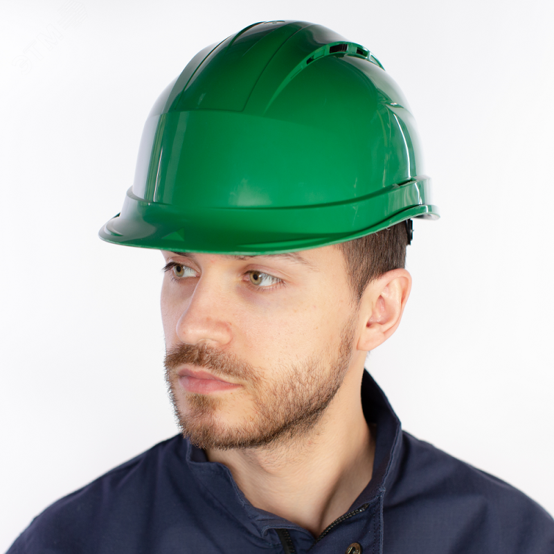 Защитная каска из полиэтилена высокой плотности (HDPE) или полипропилена (PP), устойчивая к УФ-лучам. Внутренняя оснастка из полиэтилена низкой плотности с 8-точечным креплением. Потовпитывающая вставка на лобовой части оголовья. Карманы для крепления очков, наушников, щитков. Ручная регулировка по обхвату головы от 53 до 63 см при помощи крепления скользящего типа. Защита против случайного кратковременного контакта с электрическим проводником под напряжением 440 В переменного тока.