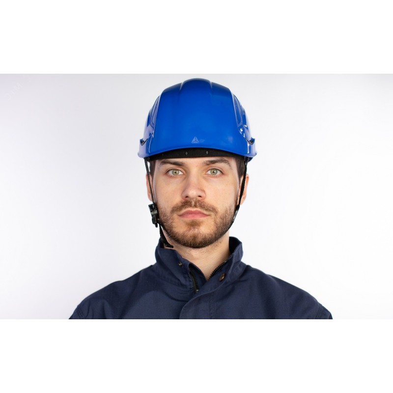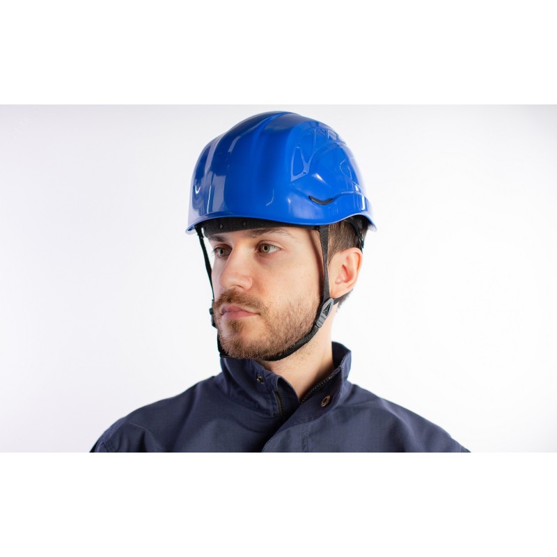 Защитная каска из термопластика AБС. Стиль горной каски - без козырька. Внутренняя оснастка из полиамида- 3 текстильных ремня с 8 точками крепления. Термоформованная вставка для впитывания пота. Регулируется по обхвату головы от 53 до 63 см. Стойкость к брызгам расплавленного металла. Комплектуется 3-х точечным подбородочным ремнем. Карманы для крепления очков, наушников, щитков.