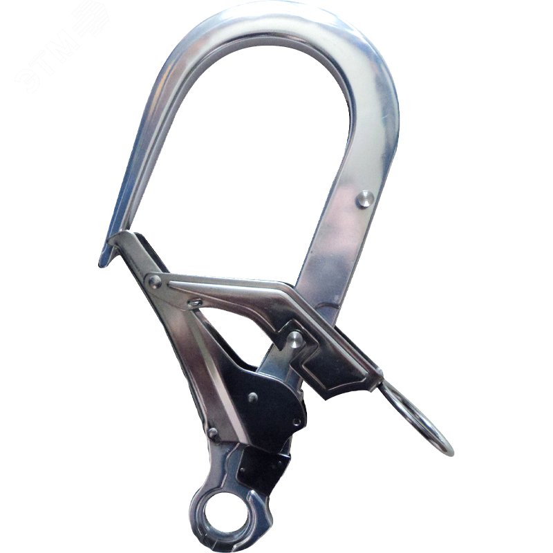 Автоматический карабин выполнен в форме крюка и предназначен для телескопической штанги. Для изготовления карабина используется высококачественный алюминий. Главным преимуществом данного изделия является двойная система блокировки. Раскрытие карабина составляет 90 мм, а длина равна 352 мм.