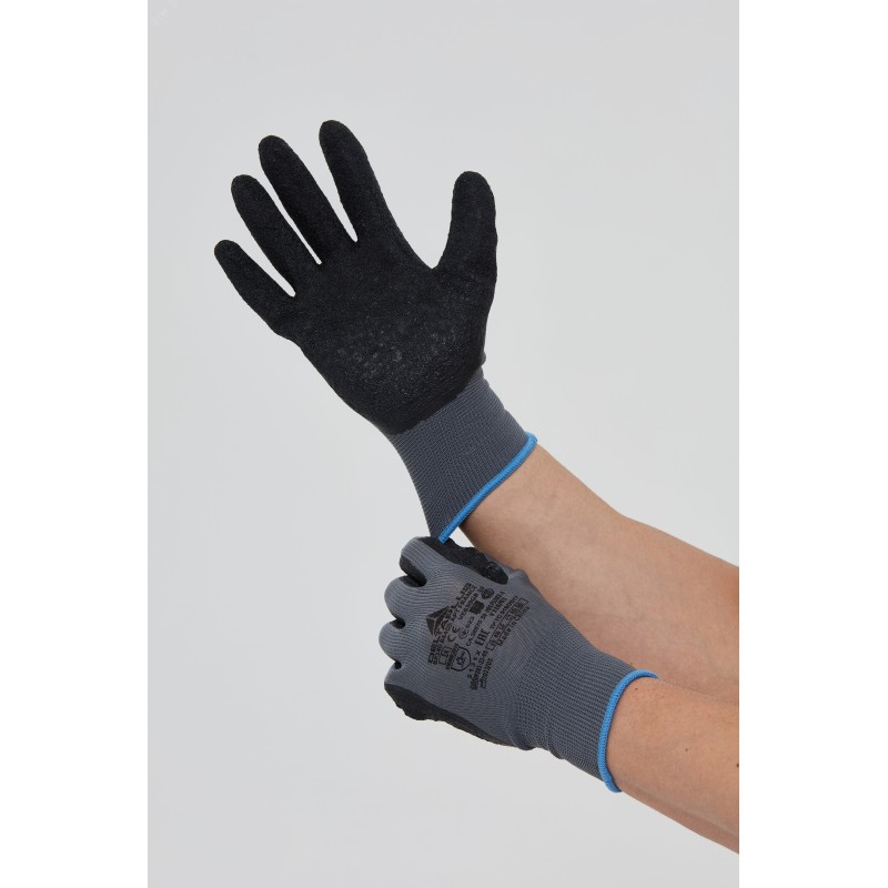 Сезон - Всесезонные. Пол - Мужской/женский. Защитные свойства изделия - Высокая устойчивость к истиранию.Технические характеристики EN388 - 3 1 2 1. Устойчивость к истиранию – 3 (высокая). Устойчивость к порезам – 1. Устойчивость к разрывам – 2. Устойчивость к проколам – 1. Состав материалов - Основа - 100% полиэстер. Размер стежка 13 Покрытие - латекс. Покрытие частичное - на ладонной части и напалках с тыльной стороны
