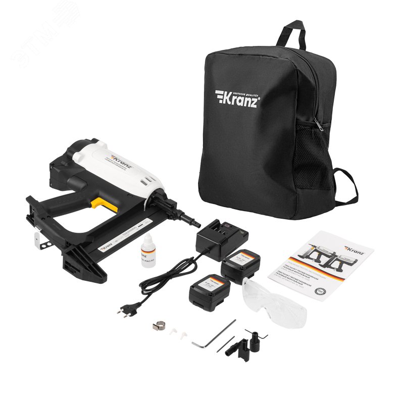 - Комплектация:гвоздезабивной газовый пистолет|аккумуляторная батарея Li-Ion - 2 шт.|зарядная станция|быстросъемная насадка - 3 шт.|шестигранный ключ - 2 шт.|защитные очки|смазочное масло|адаптер - 2 шт.|руководство по эксплуатации|чехол для инструмента|пластиковый кейс