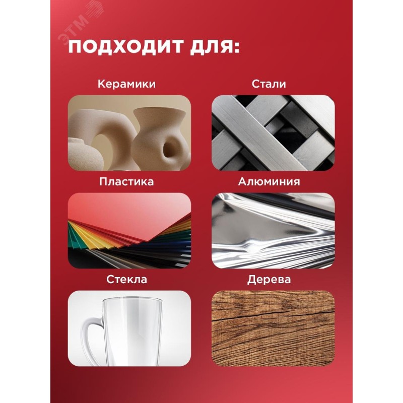- Преимущества:Высокая прочность на разрыв|Подходит для склеивания прозрачных материалов|Прочная фиксация на неровных поверхностях|Долговечность соединений|Высокая адгезия к большинству материалов