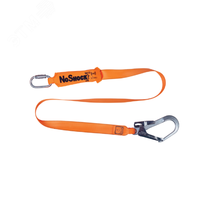 Строп одинарный ленточный с амортизатором и соединительными элементами. Материал- строп – лента из полиэстера (ширина 47 мм), амортизатор – полиэстер (ширина 47 мм), соединители – сталь. Длина стропа - 2,0 м. Петлевые наконечники. 2 соединительных элемента- 1 карабин двойного действия (раскрытие – 19 мм) и 1 карабин-крюк AM022 (раскрытие – 51 мм). Строп испытан на 140 кг.