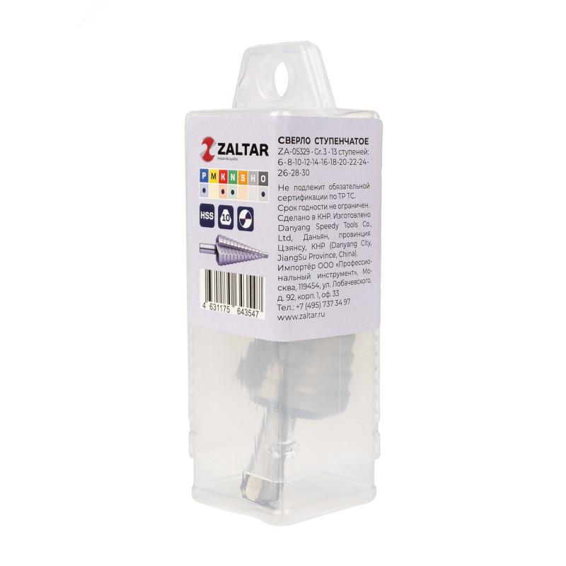 - Дополнительная информация:шлифовка CBN|без покрытия|6 - 8 - 10 - 12 - 14 - 16 - 18 - 20 - 22 - 24 - 26 - 28 - 30 мм, шаг 2 мм|материал - HSS|диаметр сверла, мм - 6 - 30|длина, мм - 98|размер - #3|диаметр хвостовика, мм - 10|шаг, мм - 2|высота сегмента, мм - 4|количество ступеней - 13