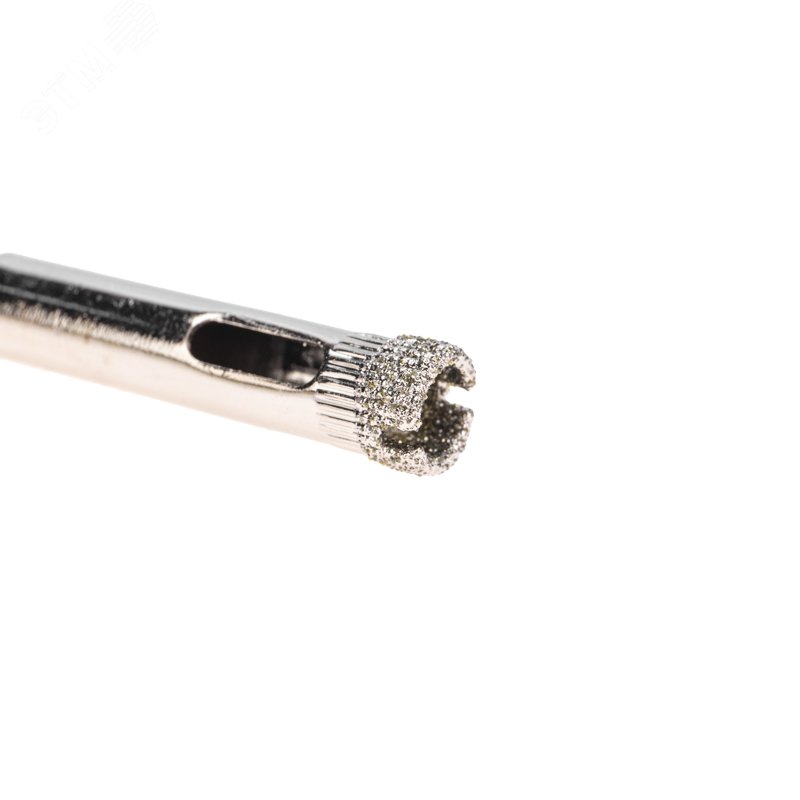 - Преимущества:Равномерное распределение алмазов по режущей кромке обеспечивает аккуратное сверление материала без трещин и сколов|Большой ресурс благодаря высокой статической и динамической прочности алмазов